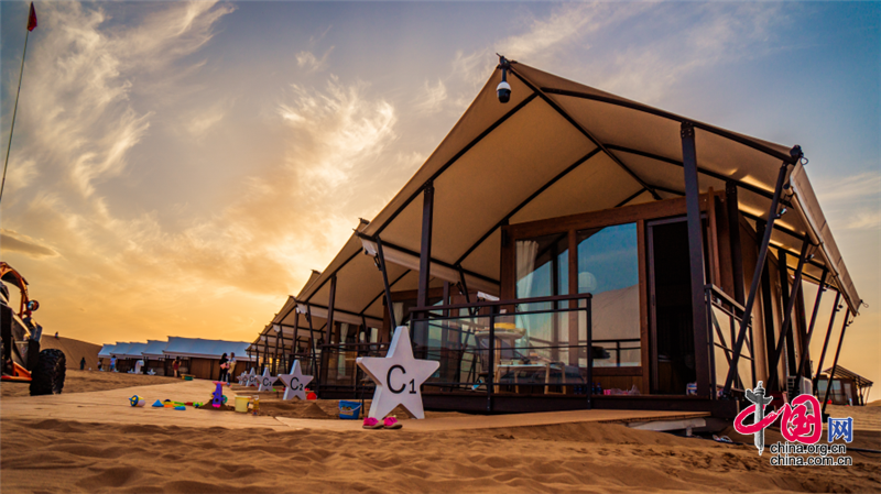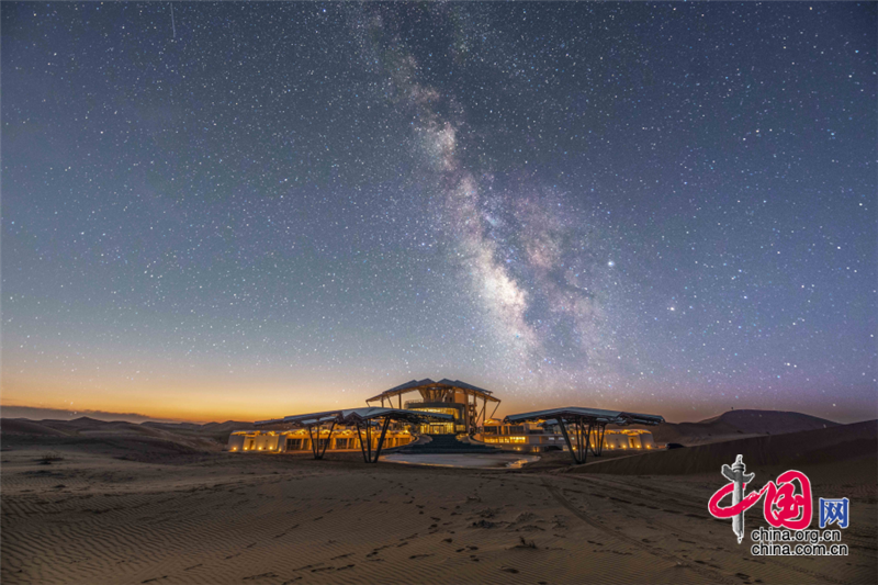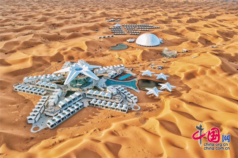 沙坡头旅游区依托良好的生态资源,打造了国内首个以沙漠观星为主题打造的酒店——星星酒店,在苍茫辽阔的沙漠之中,这座造型独特的酒店仿佛星星一般,闪烁其中。