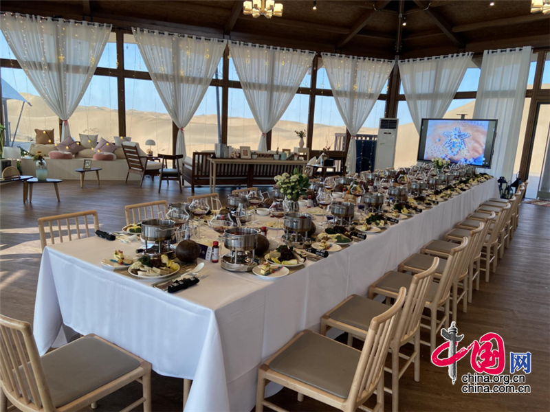 在星星酒店的360°全景餐厅、星空餐厅、沙漠美食城,感受宁夏滩羊肉与贺兰山东麓葡萄美酒完美相遇的极致体验,品味美食在舌尖、美景在眼前的惬意生活,还有特制下午茶、自助沙漠小火锅可满足游客的不同味蕾。